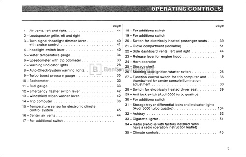 Audi 5000, turbo and turbo quattro Owner's Manual: 1985