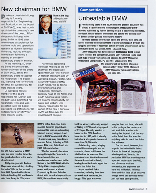 It offers detailed information about the drivers, their cars and races, includes the establishment of BMW's motorsport division and gripping accounts of racetrack action involving winners such as the diminutive BMW 700 Coupe, 1800 TI/SA and 2002.